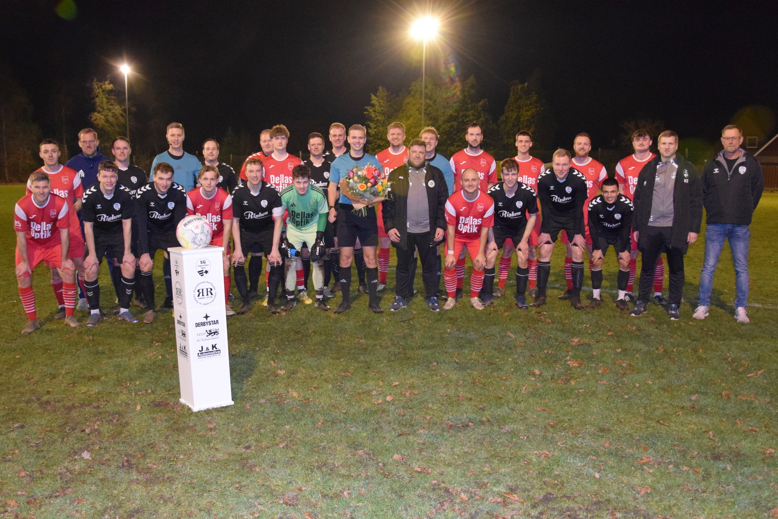 Der Unparteiische Jan Kruse vom TuS Ekern war am Vorabend Sieger bei der Sportlerwahl 2025 im Ammerland, einer Aktion des Kreissportbundes und der Nordwest-Zeitung, geworden. Schiedsrichterobmann Ralf Reddel überreichte dem sichtlich überraschten Referee vor dem Spiel einen großen Blumenstrauß und gratulierte ihm im Namen beider Mannschaften zu seinem Erfolg.