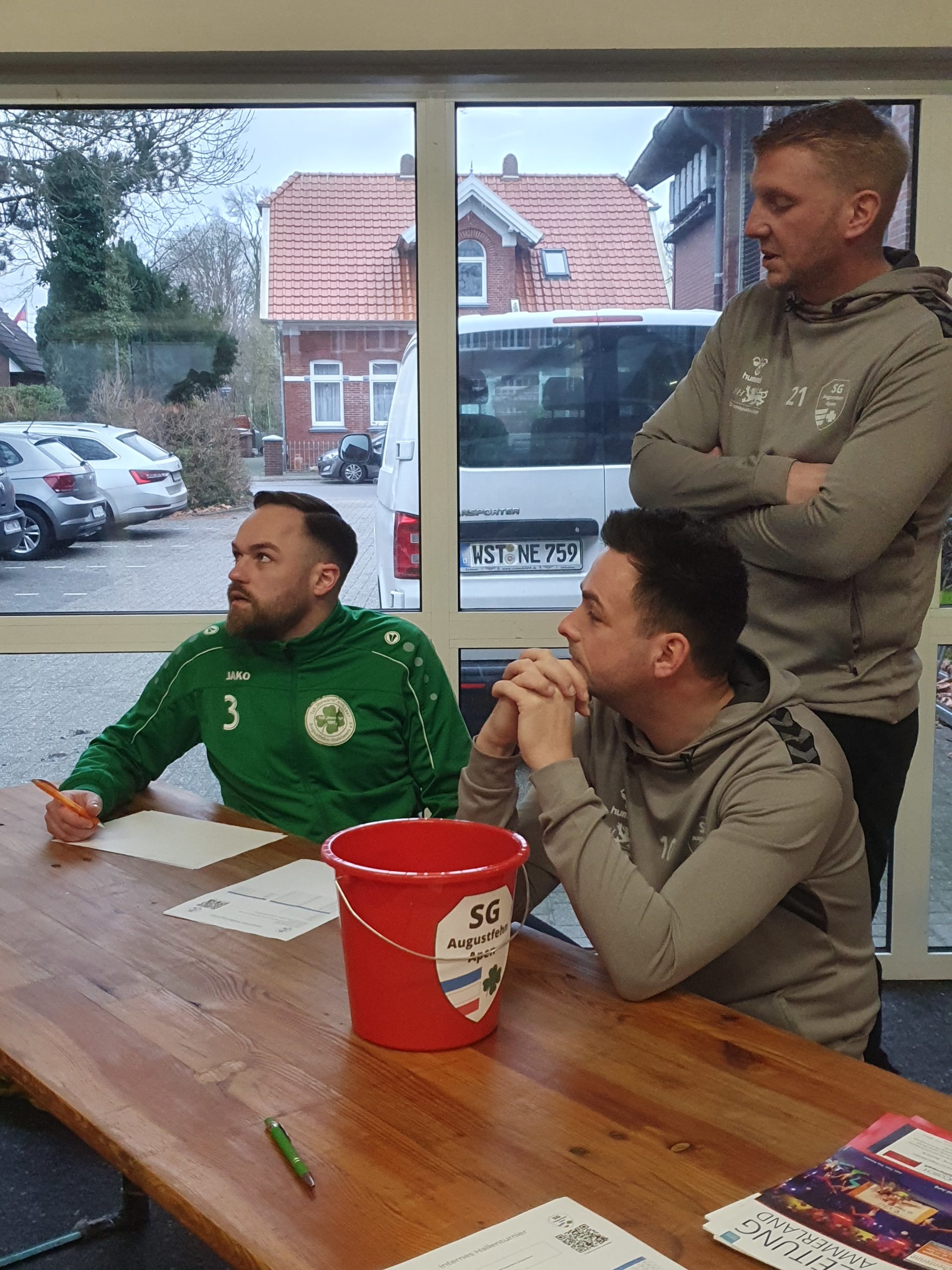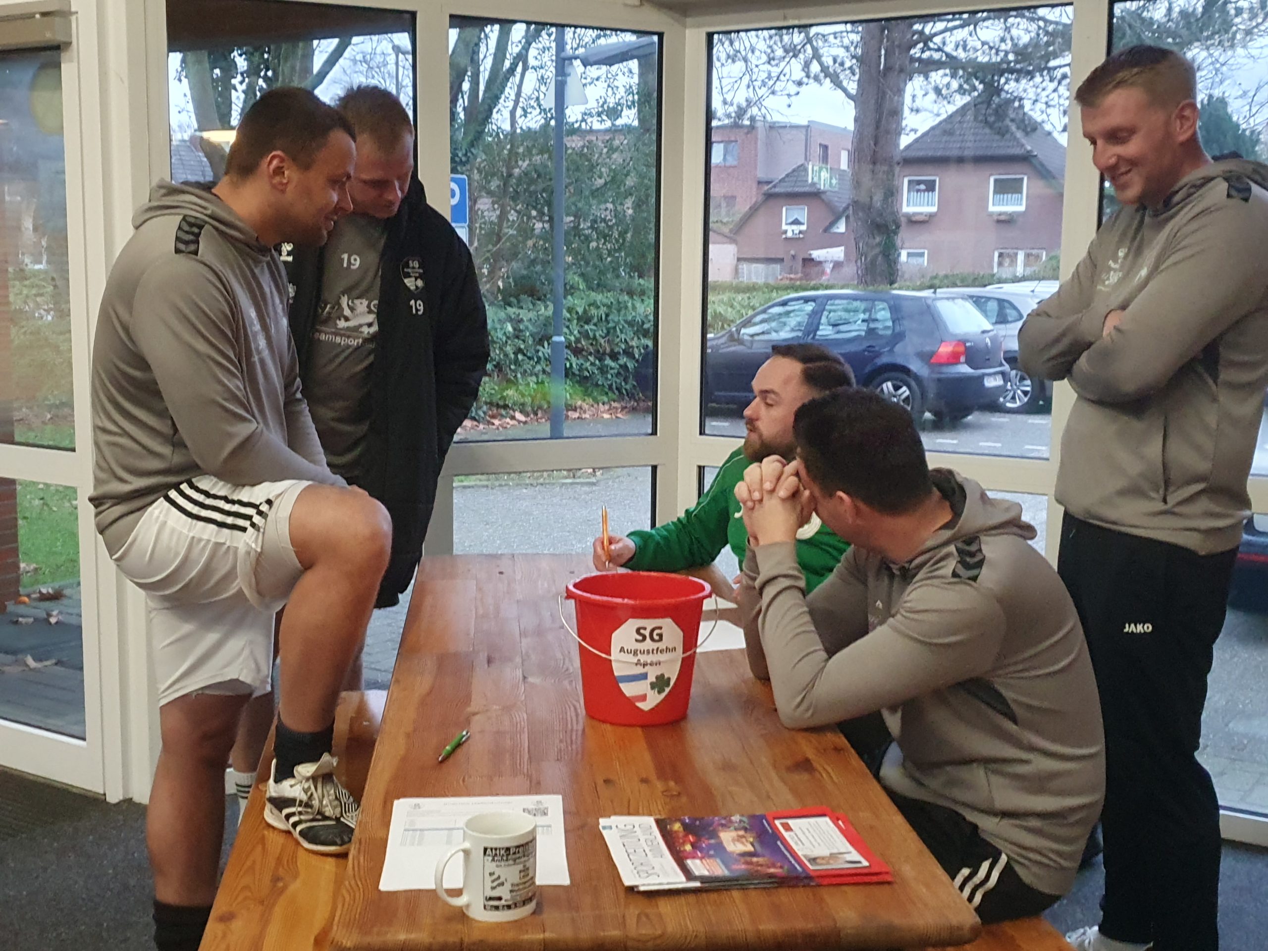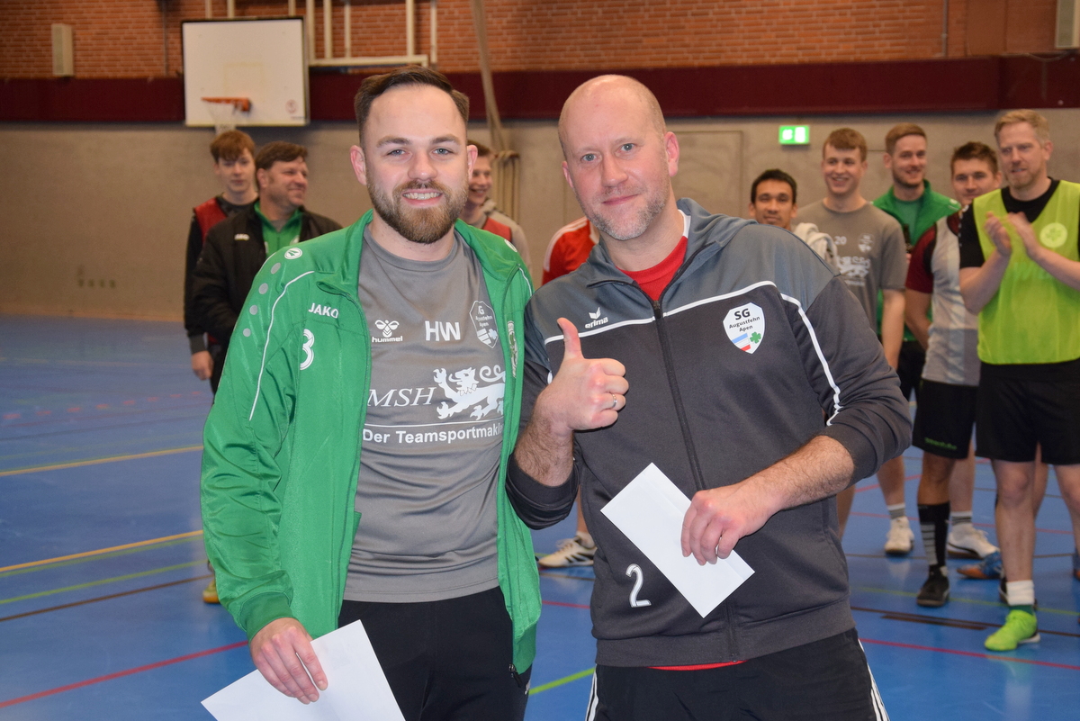 Nach den Weihnachtsfeiertagen und noch vor dem Jahreswechsel trafen sich rund 35 Spieler der vier Herrenmannschaften und unsere A-Jugendlichen der SG Augustfehn/Apen in der Sporthalle Schulstraße in Augustfehn zu einem internen „Teambuilding-Turnier“. In lockerer Atmosphäre konnten alle in der Halle ein wenig kicken und zwischendurch gemütlich bei einem Würstchen von Ripken oder einem Kaltgetränk zusammensitzen.