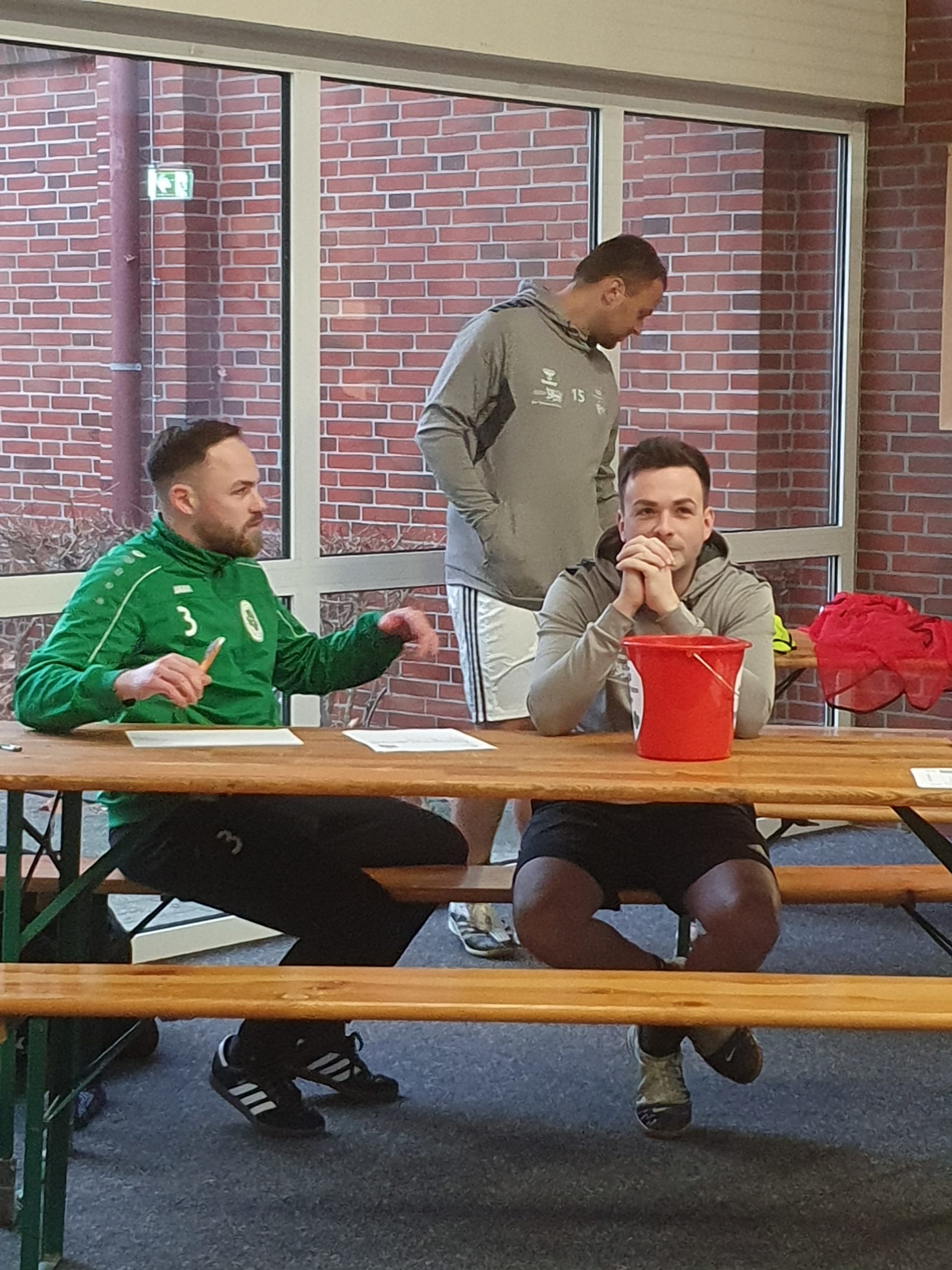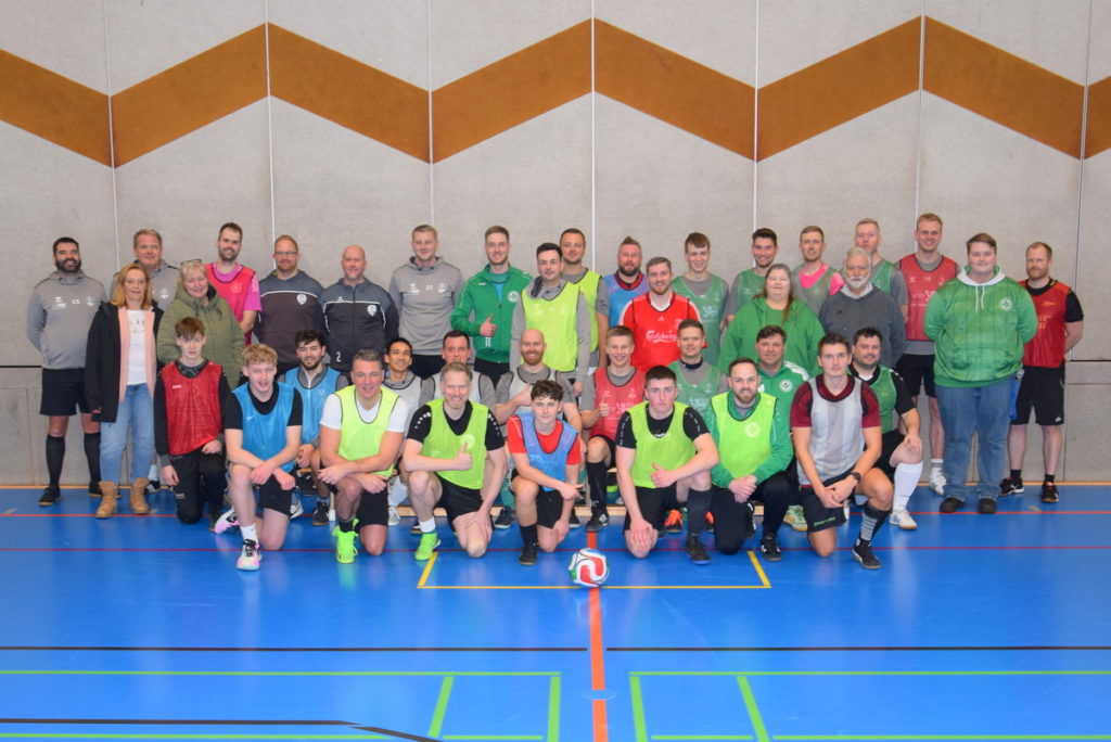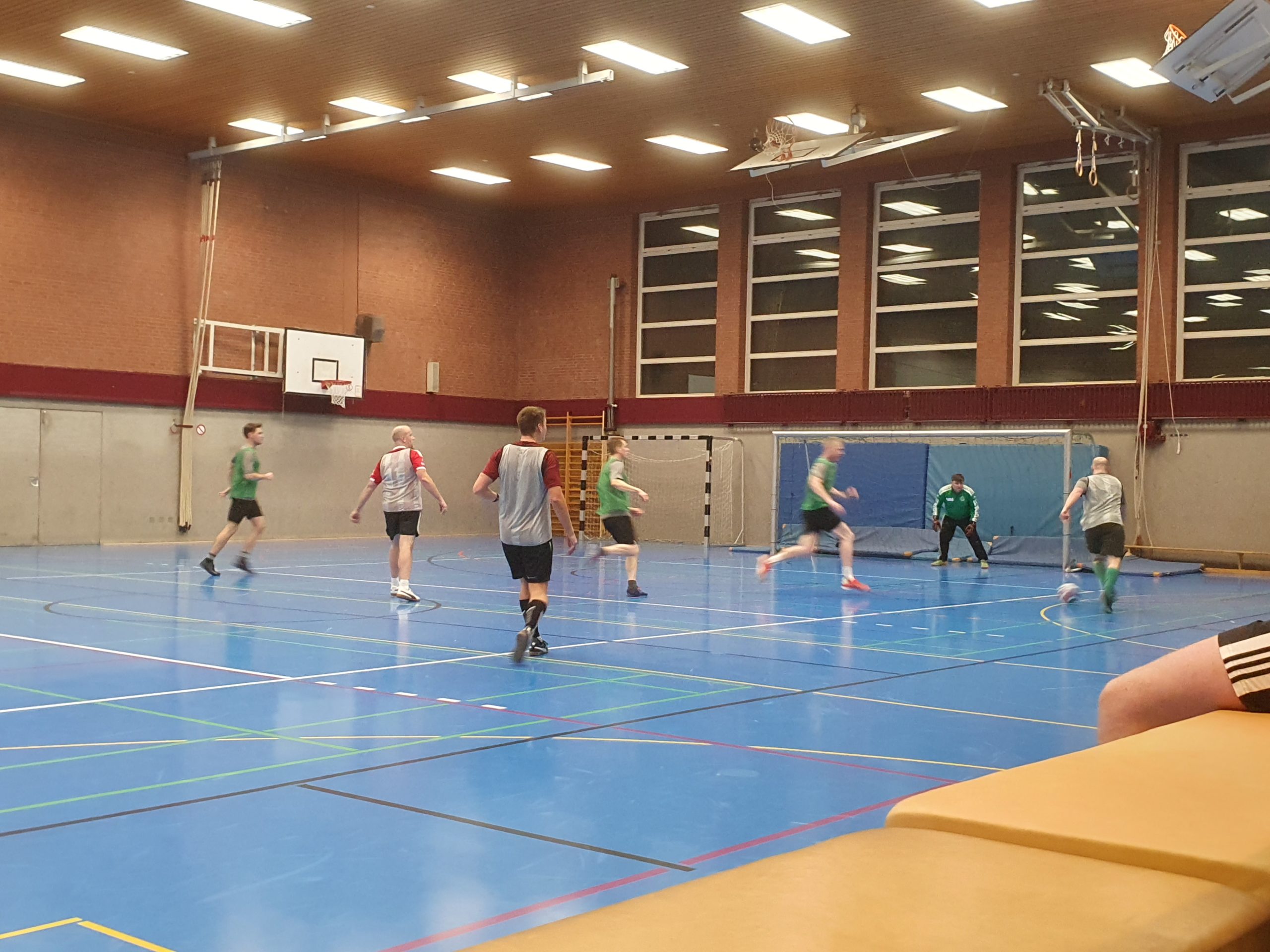 Den Torhütern wurden vor Turnierbeginn die Feldspieler zugelost. Insgesamt konnten so fünf Mannschaften zusammengestellt werden. Nachdem die Leibchen verteilt waren, spielten die Teams Gelb, Grau, Blau, Grün und Rot in zehn außerordentlich fairen Turnierspielen gegeneinander. Die Reihenfolge der oben genannten Farben/Mannschaften bildete übrigens am Ende die Abschlusstabelle. Das war aber an diesem Tag nur Nebensache. Das Miteinander und der Spaß standen bei dieser Hallenfußball-Veranstaltung absolut im Mittelpunkt.