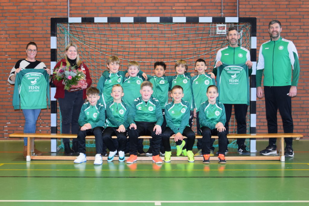 Große Freude bei unserer E2-Jugend: Die Nachwuchsfußballer des TuS Vorwärts Augustfehn dürfen sich über einen neuen Satz Trainingsanzüge freuen. Damit können unsere jungen Kicker künftig einheitlich und stolz bei Spielen und Turnieren auftreten.
